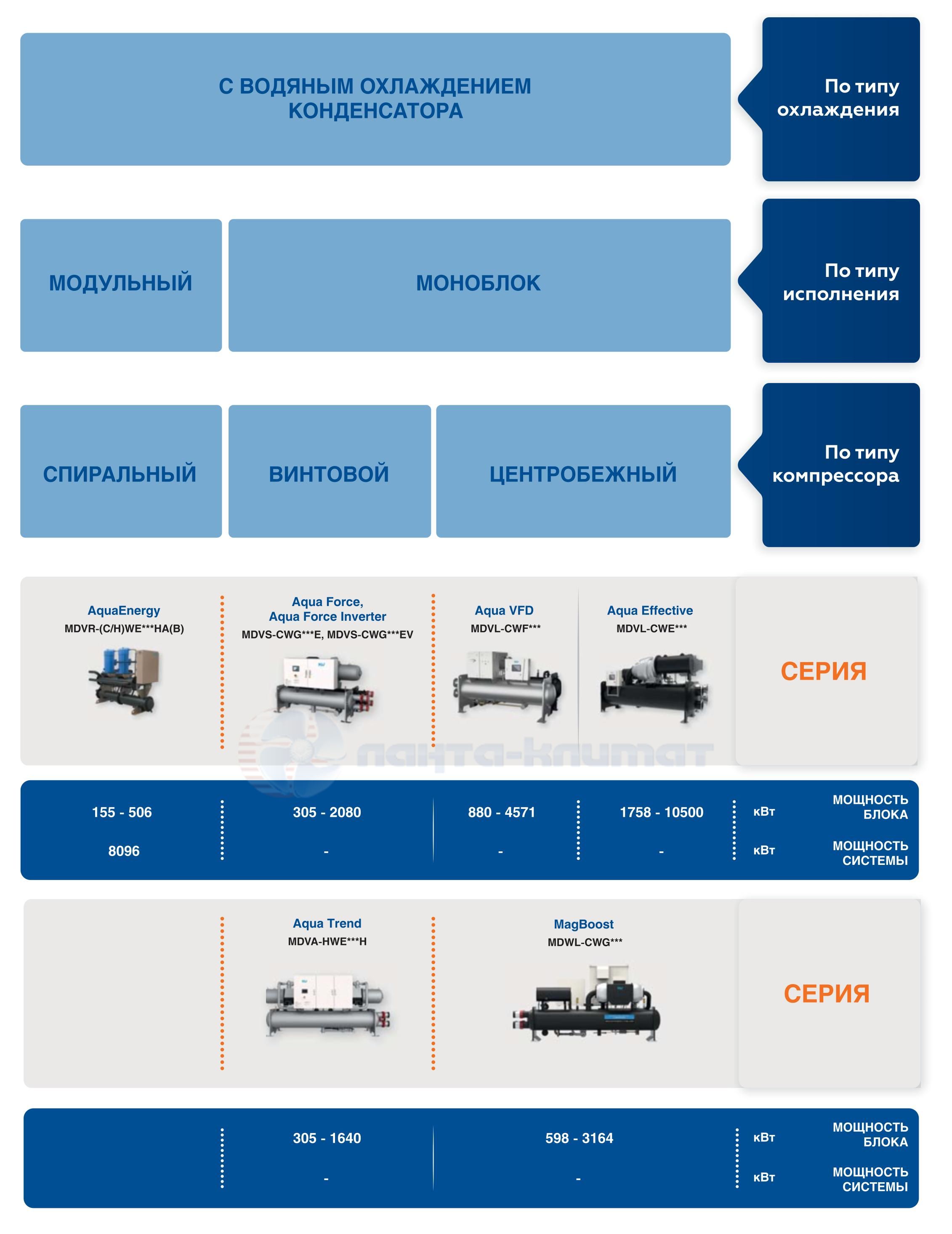В ассортименте MDV есть мощные высокотоннажные чиллеры для крупных объектов с большими потребностями в охлаждении. Они эффективно поддерживают заданные климатические параметры даже при максимальной нагрузке.