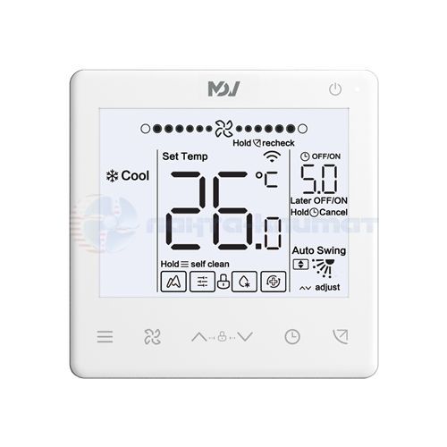 В комплекте идёт проводной пульт дистанционного управления WDC3-86S. Опционально доступны проводные пульты управления (WDC3-86T, WDC3-86T-B, WDC3-120T, WDC3-120T-B) и беспроводной пульт дистанционного управления RM12F1 (при использовании только беспроводного пульта нужна плата дисплея 17226000006101 (опция)